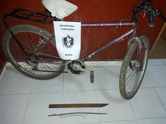 Pero a la siesta y estando en la canchita de futbol, nuevamente se presentó el agresor (luego identificado como F.J.L. de la misma localidad), quien habría intentado atacar al denunciante (O.G.) con una especie de machete que según se pudo saber después habría sido un arma de confección casera (se puede ver en la imagen). Aparentemente y según lo que se escuchaba en el lugar, el atacante pretendía que el otro reconociera que éste le enviaba mensajes a su mujer (se desconocen los motivos) lo que habría provocado la reacción del agresor.