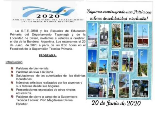 La Dirección Educativa Regional 3, las escuelas del Departamento Tapenagá y de la Localidad de Basail, invitan a celebrar el Día de la Bandera a través de la cuenta de Facebook de la Supervisión Técnica Primaria